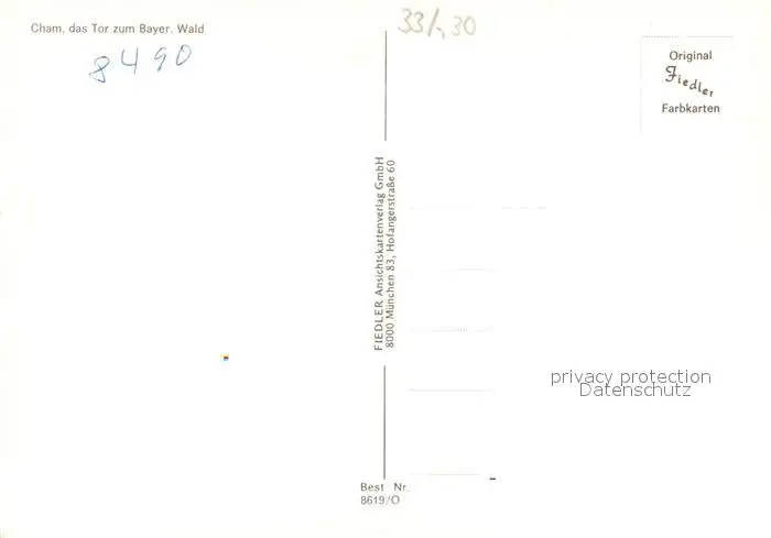 Cham_Oberpfalz Stadtpanorama Tor zum Bayerischen Wald Cham Oberpfalz postalisch nicht gelaufen nach 1965 Erhaltung siehe scans [FriedD77] Frierer