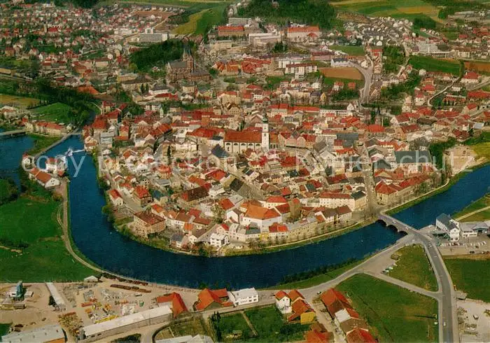 AK / Ansichtskarte Cham_Oberpfalz Tor zum Bayerischen Wald am Fluss Regen Fliegeraufnahme Cham Oberpfalz