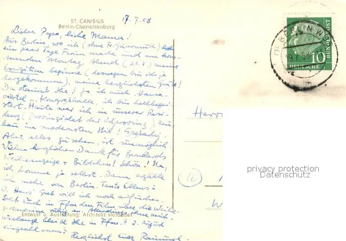 Charlottenburg St. Canisius Kirche Charlottenburg postalisch gelaufen 1958 Erhaltung siehe scans [NatalD47] NataID47