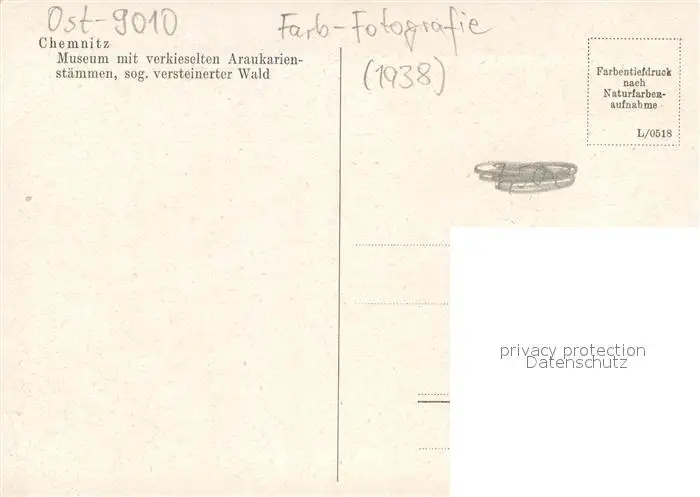 Chemnitz Museum mit verkieselten Araukarienstaemmen sog. versteinerter Wald Chemnitz postalisch nicht gelaufen 1938 Erhaltung siehe scans [LiesaD40] LiesID40