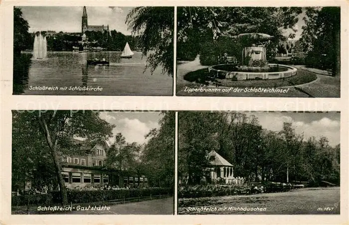 AK / Ansichtskarte Chemnitz Schlossteich mit Schlosskirche Lipperbrunnen Schlossteich Gaststaette Chemnitz