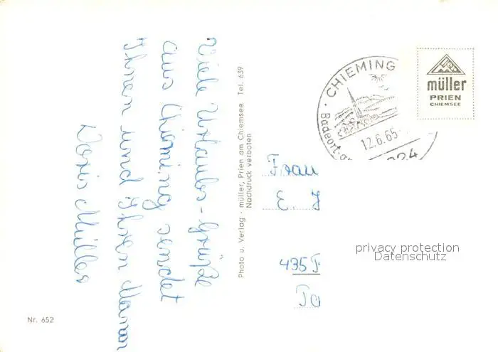 Chieming_Chiemsee Abend am Zeltplatz Dorfstrasse Kirche Segeln Badestrand Seglerhafen Chieming Chiemsee postalisch gelaufen 1965 Erhaltung siehe scans [FriedD77] Frierer