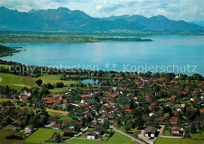 AK / Ansichtskarte Chieming_Chiemsee Alpenpanorama Fliegeraufnahme Chieming Chiemsee