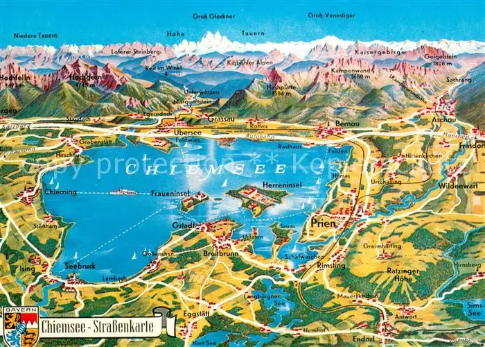 AK / Ansichtskarte Chiemsee Panoramakarte Chiemsee