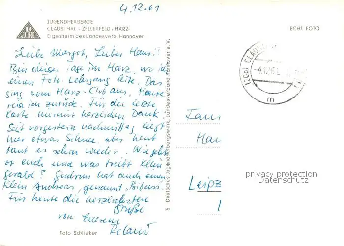 Clausthal-Zellerfeld Jugendherberge Clausthal-Zellerfeld postalisch gelaufen 1961 Erhaltung siehe scans [FriedD77] Frierer