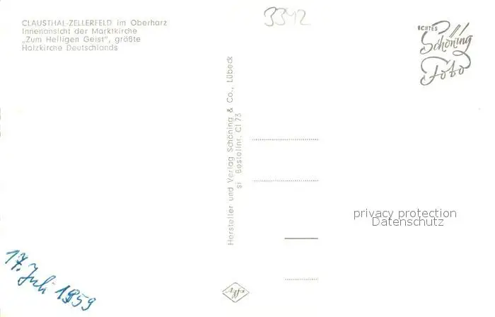 Clausthal-Zellerfeld Marktkirche Zum Heiligen Geist Inneres Clausthal-Zellerfeld postalisch nicht gelaufen 1921-1965 Erhaltung siehe scans [WerneD78] WernPID7
