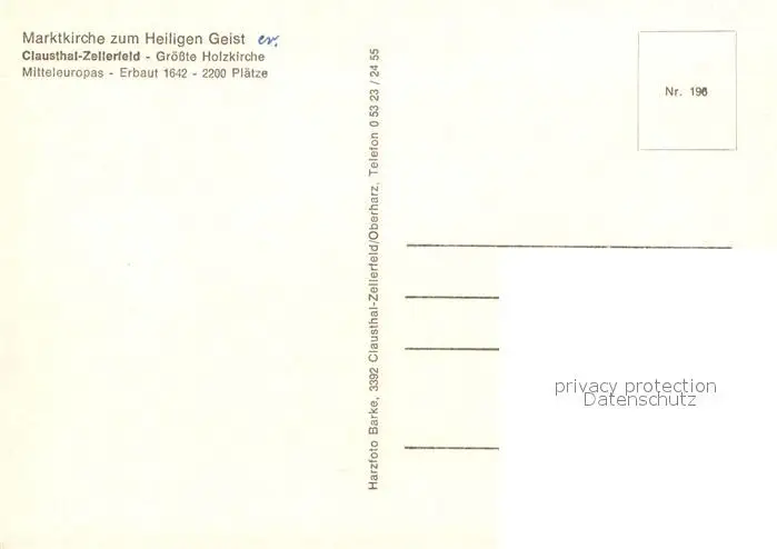 Clausthal-Zellerfeld Marktkirche zum Heiligen Geist Holzkirche Clausthal-Zellerfeld postalisch nicht gelaufen nach 1965 Erhaltung siehe scans [KathaD81] Kathoren