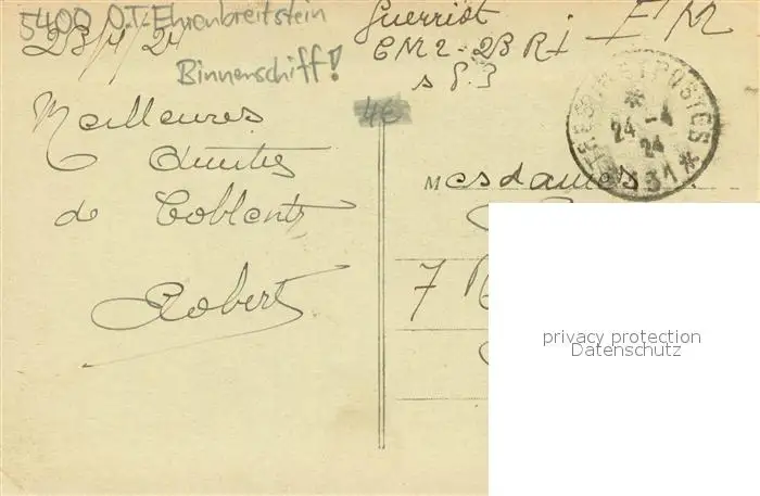 Coblence_Coblenz_Koblenz La Forteresse Coblence_Coblenz_Koblenz postalisch gelaufen 1924 Erhaltung siehe scans [WerneD78] WernPID7