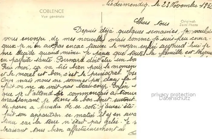 Coblence_Coblenz_Koblenz Rheinblick Coblence_Coblenz_Koblenz postalisch nicht gelaufen 1952 Erhaltung siehe scans [LiesaD40] LiesID40