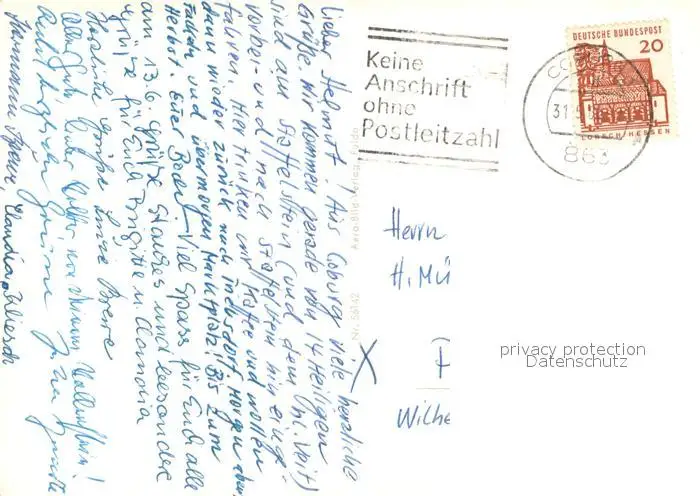 Coburg Fliegeraufnahme Coburg postalisch gelaufen 1966 Erhaltung siehe scans [PaolaD17] PaolPID1