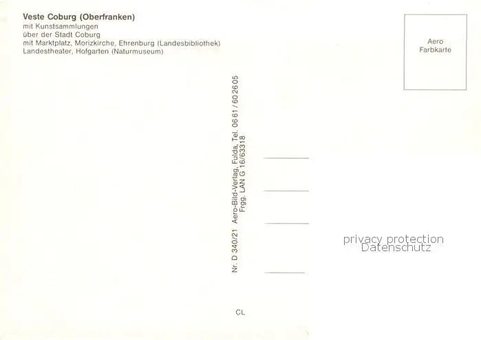 Coburg Fliegeraufnahme mit Veste Coburg Stadt Marktplatz Morizkirche Ehrenburg Landestheater Hofgarten Coburg postalisch nicht gelaufen nach 1965 Erhaltung siehe scans [WerneD78] WernPID7