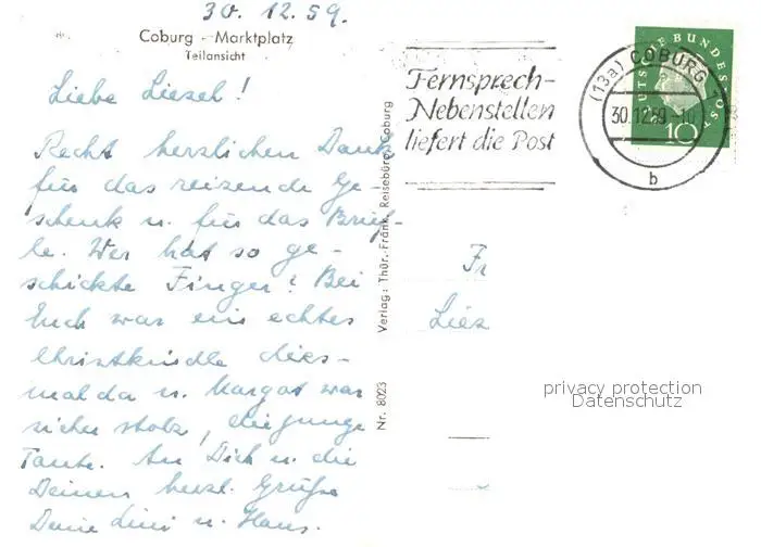 Coburg Marktplatz Coburg postalisch gelaufen 1959 Erhaltung siehe scans [WerneD78] WernPID7