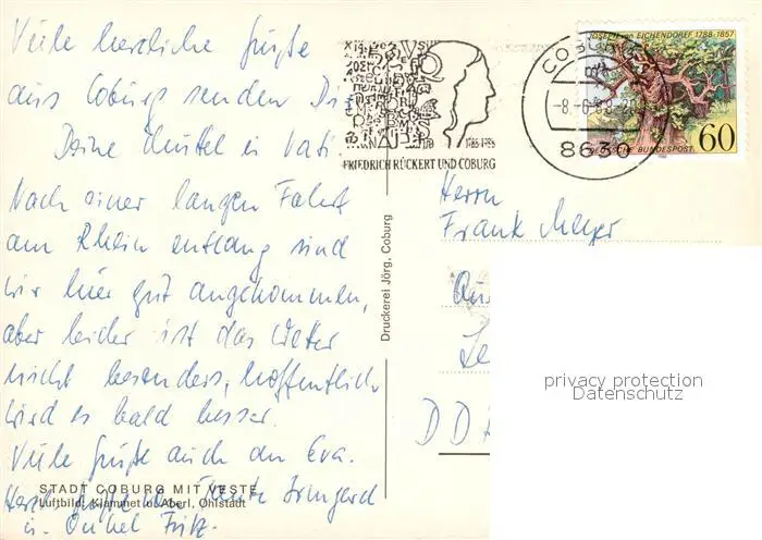 Coburg Stadtpanorama mit Veste Fliegeraufnahme Coburg postalisch gelaufen 1988 Erhaltung siehe scans [FriedD77] Frierer