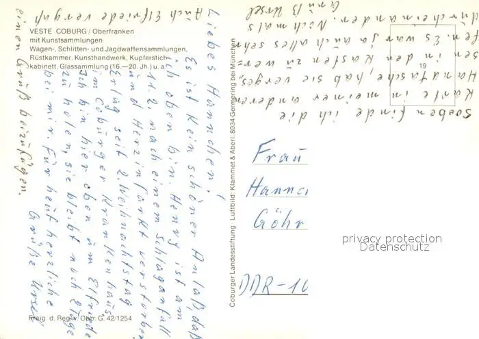 Coburg Veste Fliegeraufnahme mit Kunstsammlungen Coburg postalisch nicht gelaufen nach 1965 Erhaltung siehe scans [LiesaD40] LiesID40