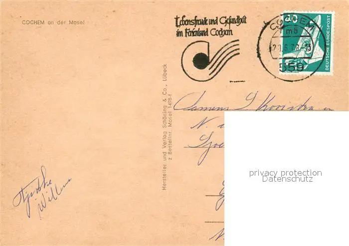 Cochem_Mosel Brueckenpartie Cochem Mosel postalisch gelaufen 1978 Erhaltung siehe scans [LiesaD40] LiesID40