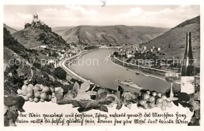 AK / Ansichtskarte Cochem_Mosel Burg Panorama Weintrauben Weinflasche Cochem Mosel