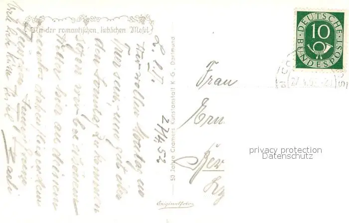 Cochem_Mosel Burg Panorama Weintrauben Weinflasche Cochem Mosel postalisch gelaufen 1952 Erhaltung siehe scans [KathaD81] Kathoren