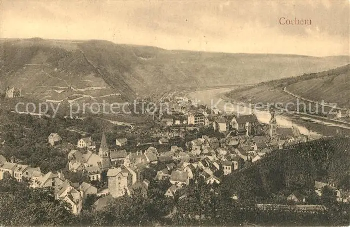 Cochem_Mosel Panorama Cochem Mosel postalisch gelaufen 1909 Erhaltung siehe scans [FriedD77] Frierer