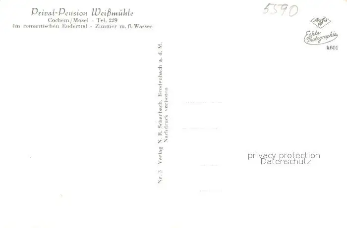 Cochem_Mosel Pension Weissmuehle im Enderttal Cochem Mosel postalisch nicht gelaufen 1921-1965 Erhaltung siehe scans [FriedD77] Frierer