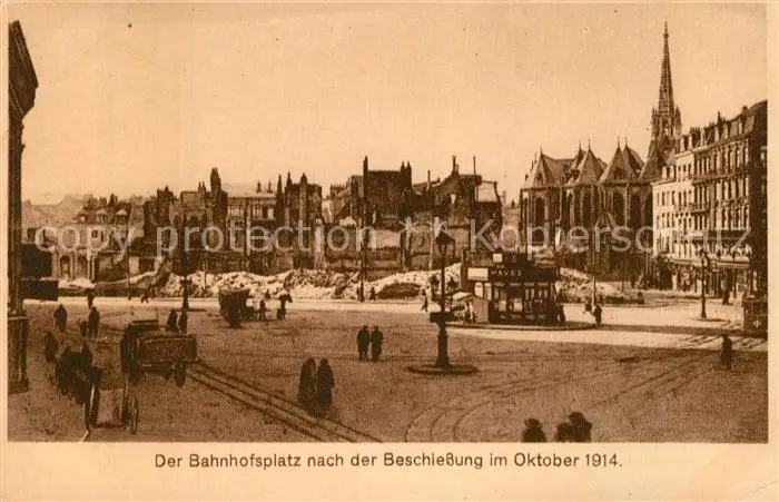 Coeln_Rhein Bahnhofsplatz nach der Beschiessung 1914 Coeln_Rhein postalisch nicht gelaufen 1914 Feldpost Erhaltung siehe scans [WerneD78] Feldpost WernPID7