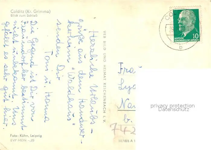 Colditz Bruecke Zwickauer Mulde Blick zum Schloss Colditz postalisch gelaufen 1966 Erhaltung siehe scans [FriedD77] Frierer