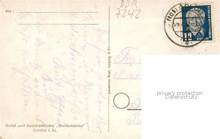 Colditz Kategorie Alte Ansichtskarten Postkarten bx61713 Colditz Hotel Sommerfrische Waldschaenke Colditz postalisch gelaufen Erhaltung siehe scans [KathaD81]