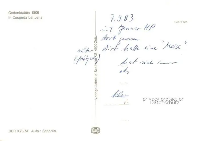 Cospeda Gedenkstaette 1806 Cospeda postalisch nicht gelaufen 1983 Erhaltung siehe scans [WerneD78] WernPID7