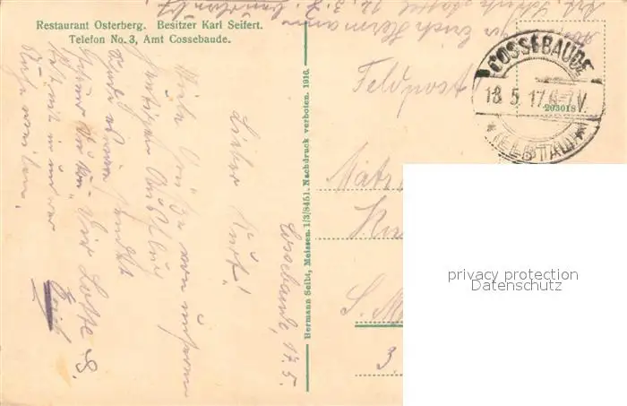 Cossebaude Restaurant Osterberg Gedicht Cossebaude postalisch gelaufen 1917 Feldpost Erhaltung siehe scans [FriedD77] Feldpost Frierer