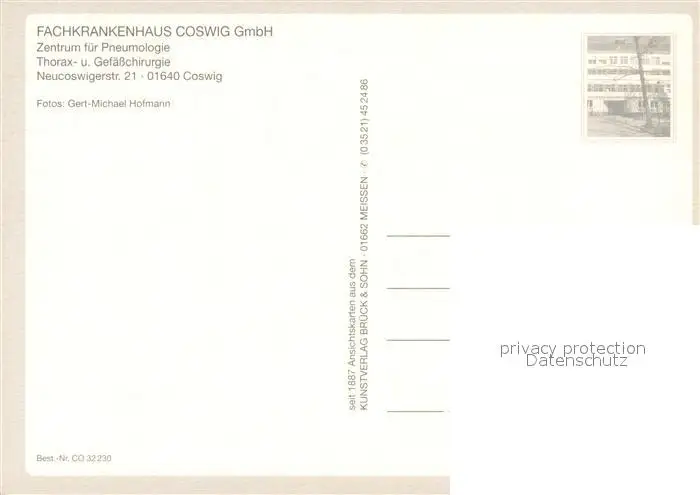 Coswig_Sachsen Fachkrankenhaus Coswig Sachsen postalisch nicht gelaufen nach 1965 Erhaltung siehe scans [FriedD77] Frierer