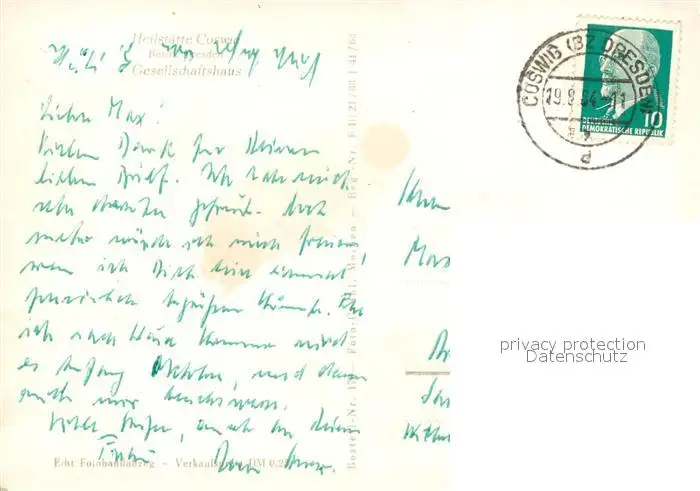 Coswig_Sachsen Heilstaette Gesellschaftshaus Coswig Sachsen postalisch gelaufen 1964 Erhaltung siehe scans [FriedD77] Frierer
