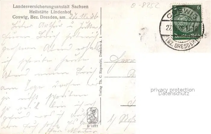 Coswig_Sachsen Heilstaette Lindenhof Coswig Sachsen postalisch gelaufen 1936 Erhaltung siehe scans [FriedD77] Frierer
