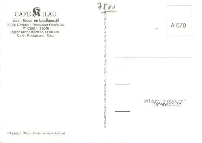 Cottbus Café Kilau Cottbus postalisch nicht gelaufen nach 1965 Erhaltung siehe scans [FriedD77] Frierer