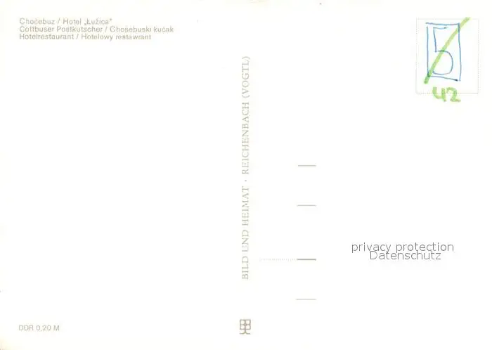Cottbus Hotel Lausitz Restaurant Cottbuser Postkutscher Cottbus postalisch nicht gelaufen 1977 Erhaltung siehe scans [FriedD77] Frierer