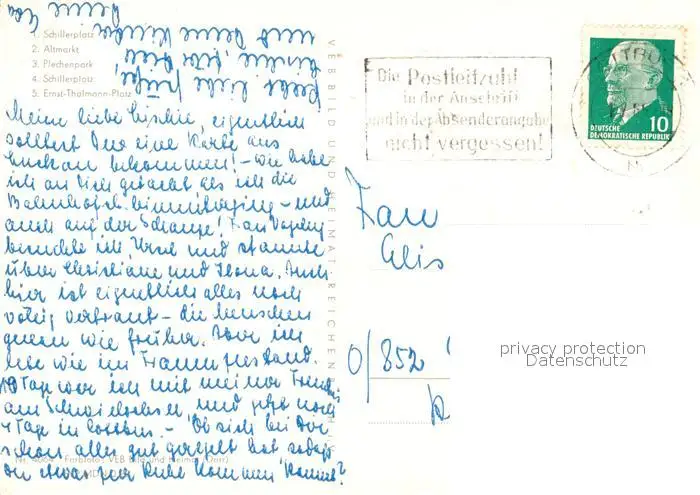 Cottbus Schillerplatz Altmarkt Plechenpark Schillerplatz Ernst Thaelmann Platz Cottbus postalisch gelaufen 1965 Erhaltung siehe scans [FriedD77] Frierer