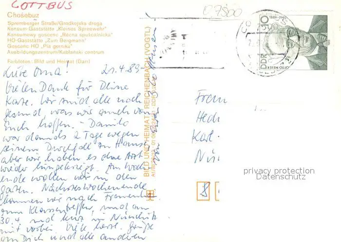 Cottbus Spremberger-Strasse Restaurants Ausbildungszentrum Cottbus postalisch gelaufen 1989 Erhaltung siehe scans [LiesaD40] LiesID40