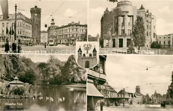 Cottbus Spremberger Turm Goethe Park Entenhaus Teich Theater Altmarkt Wappen Cottbus postalisch nicht gelaufen 1956 Erhaltung siehe scans [FriedD77] Frierer