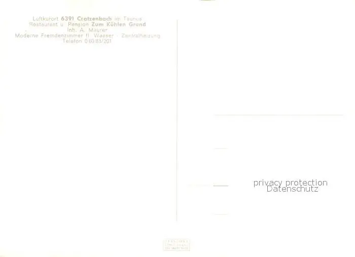 Cratzenbach Restaurant Pension Zum Kuehlen Grund Gastraum Zimmer Cratzenbach postalisch nicht gelaufen nach 1965 Erhaltung siehe scans [WerneD78] WernPID7