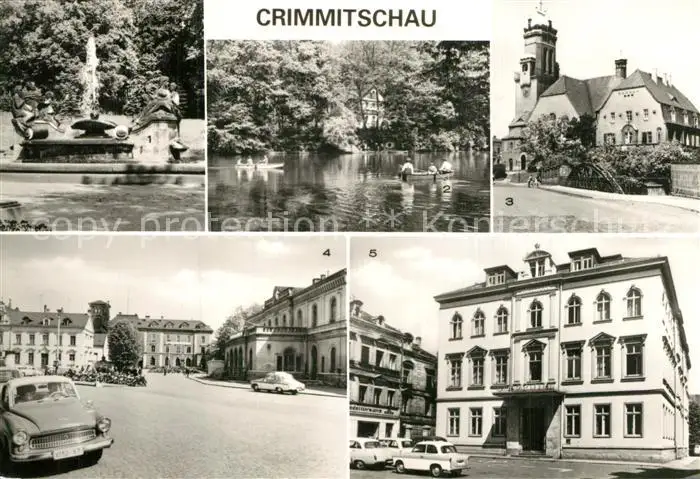 AK / Ansichtskarte Crimmitschau Friedenspark Gondelteich im Sahnpark Johanneskirche Bahnhofsvorplatz Haus der Einheit Crimmitschau