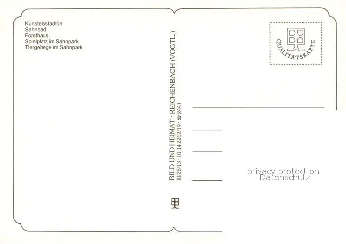 Crimmitschau Kunsteisstadion Sahnbad Forsthaus Spielplatz im Sahnpark Tiergehege Crimmitschau postalisch nicht gelaufen nach 1965 Erhaltung siehe scans [WerneD78] WernPID7