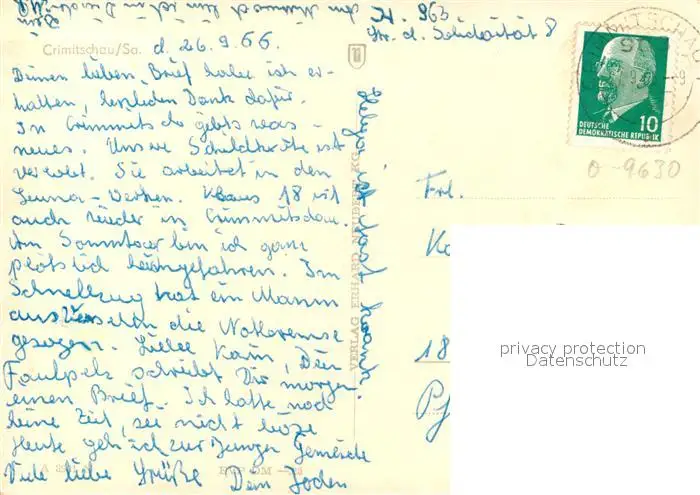 Crimmitschau Panorama Crimmitschau postalisch gelaufen 1966 Erhaltung siehe scans [WerneD78] WernPID7