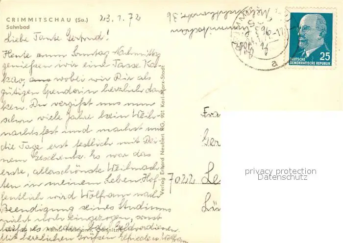 Crimmitschau Sahnbad Fontaene Crimmitschau postalisch gelaufen 1972 Erhaltung siehe scans [FriedD77] Frierer