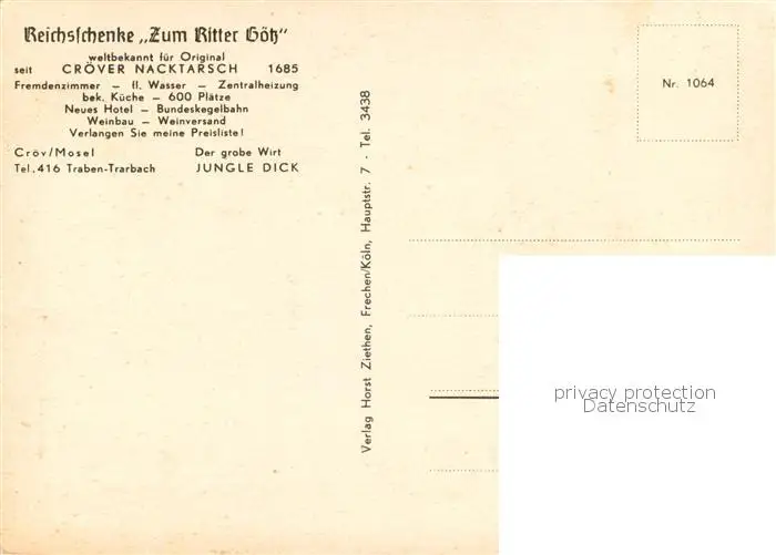 Croev_Kroev_Croev_Mosel Reichsschenke Zum Ritter Goetz Original Croever Nacktarsch Moselblick postalisch nicht gelaufen nach 1965 Erhaltung siehe scans [FriedD77] Frierer