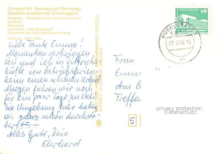 Cursdorf Bergbahn Spielplatz Wegweiser Ferienheime Freibad Cursdorf postalisch gelaufen 1990 Erhaltung siehe scans [FriedD77] Frierer