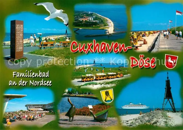 AK / Ansichtskarte Cuxhaven_Doese_Nordseebad Fliegeraufnahme Strand Uferpromenade Kugelbake Gaensedenkmal Cuxhaven_Doese_Nordseebad