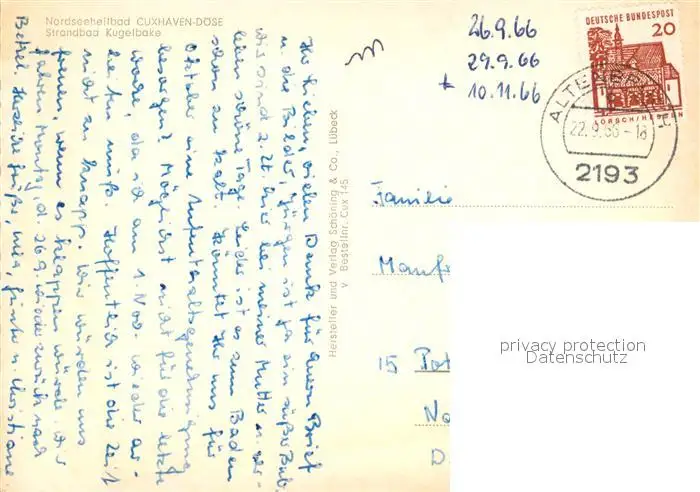 Cuxhaven_Doese_Nordseebad Strandbad Kugelbake Cuxhaven_Doese_Nordseebad postalisch gelaufen 1966 Erhaltung siehe scans [KathaD81] Kathoren
