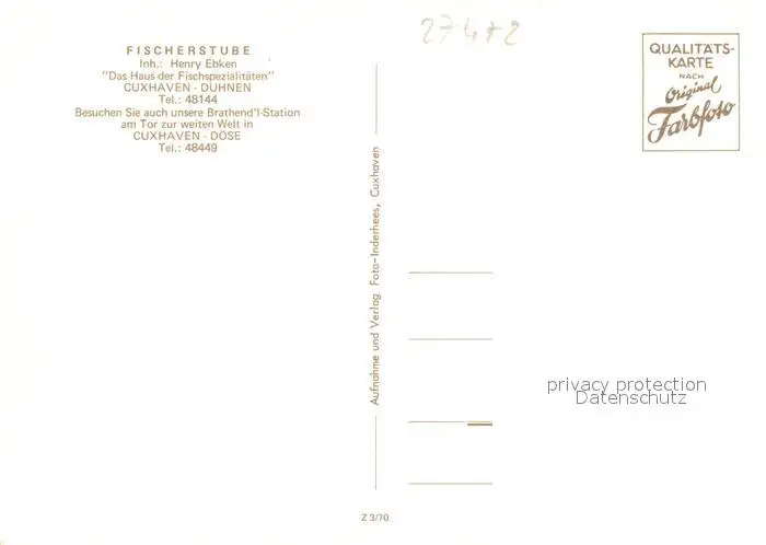 Cuxhaven_Duhnen_Nordseebad Fischerstube Speisesaal Cuxhaven_Duhnen postalisch nicht gelaufen nach 1965 Erhaltung siehe scans [WerneD78] WernPID7