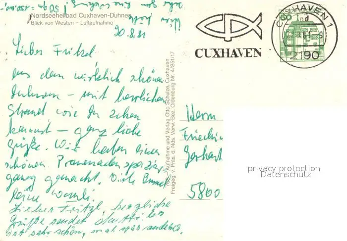 Cuxhaven_Nordseebad Fliegeraufnahme Strandpanorama Cuxhaven_Nordseebad postalisch gelaufen 1981 Erhaltung siehe scans [LiesaD40] LiesID40