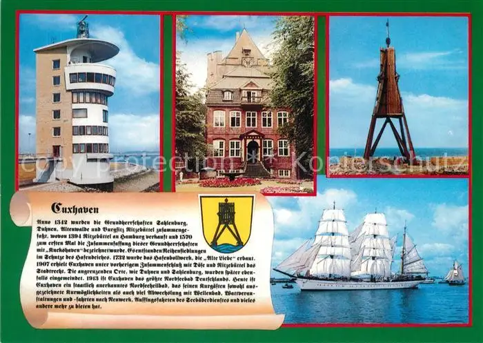 Cuxhaven_Nordseebad Rundturm Rathaus Alte Liebe Dreimaster Segelschiff Cuxhaven_Nordseebad postalisch nicht gelaufen nach 1965 Erhaltung siehe scans [WerneD78] WernPID7