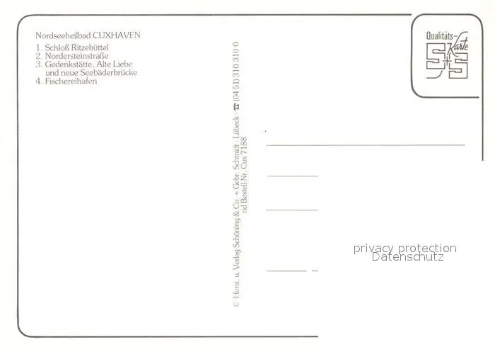 Cuxhaven_Nordseebad Schloss Ritzebuettel Nordersteinstrasse Gedenkstaette Alte Liebe Cuxhaven_Nordseebad postalisch nicht gelaufen nach 1965 Erhaltung siehe scans [KathaD81] Kathoren