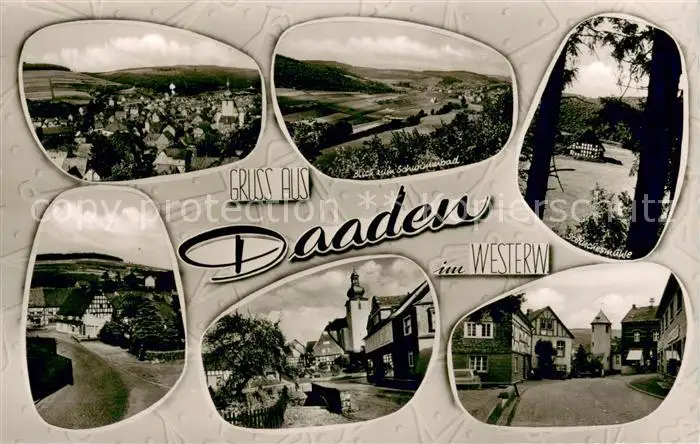Daaden Teilansichten mit Schwimmbad Daaden postalisch nicht gelaufen 1958 Erhaltung siehe scans [LiesaD40] LiesID40